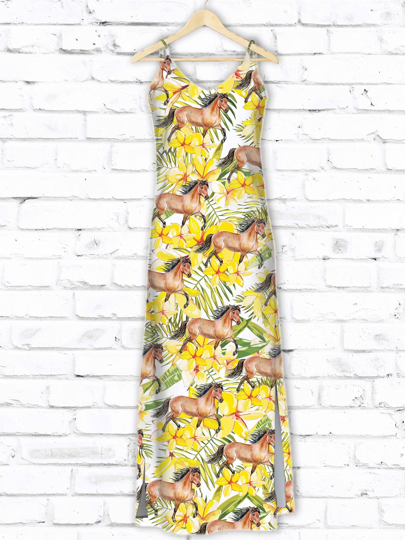 Hawaiian Horse Yellow Flower D1507 - Hawaii Dress