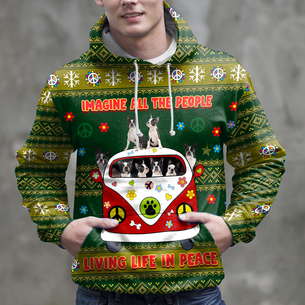 Imagine All The People Living Life In Peace Boston Terrier HZ112307 - All Over Print Unisex Hoodie
