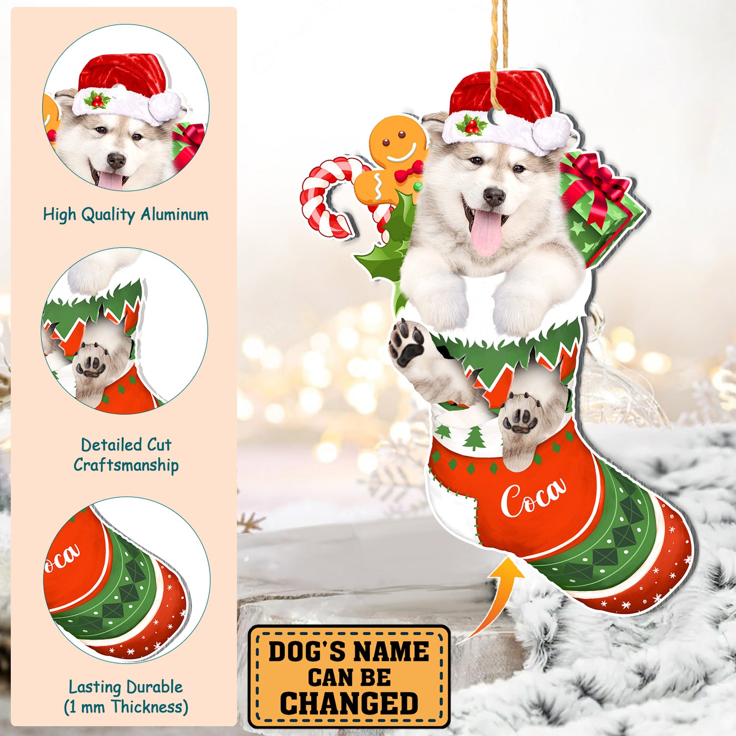 Personalized Alaskan Malamute In Christmas Stocking Aluminum Ornament