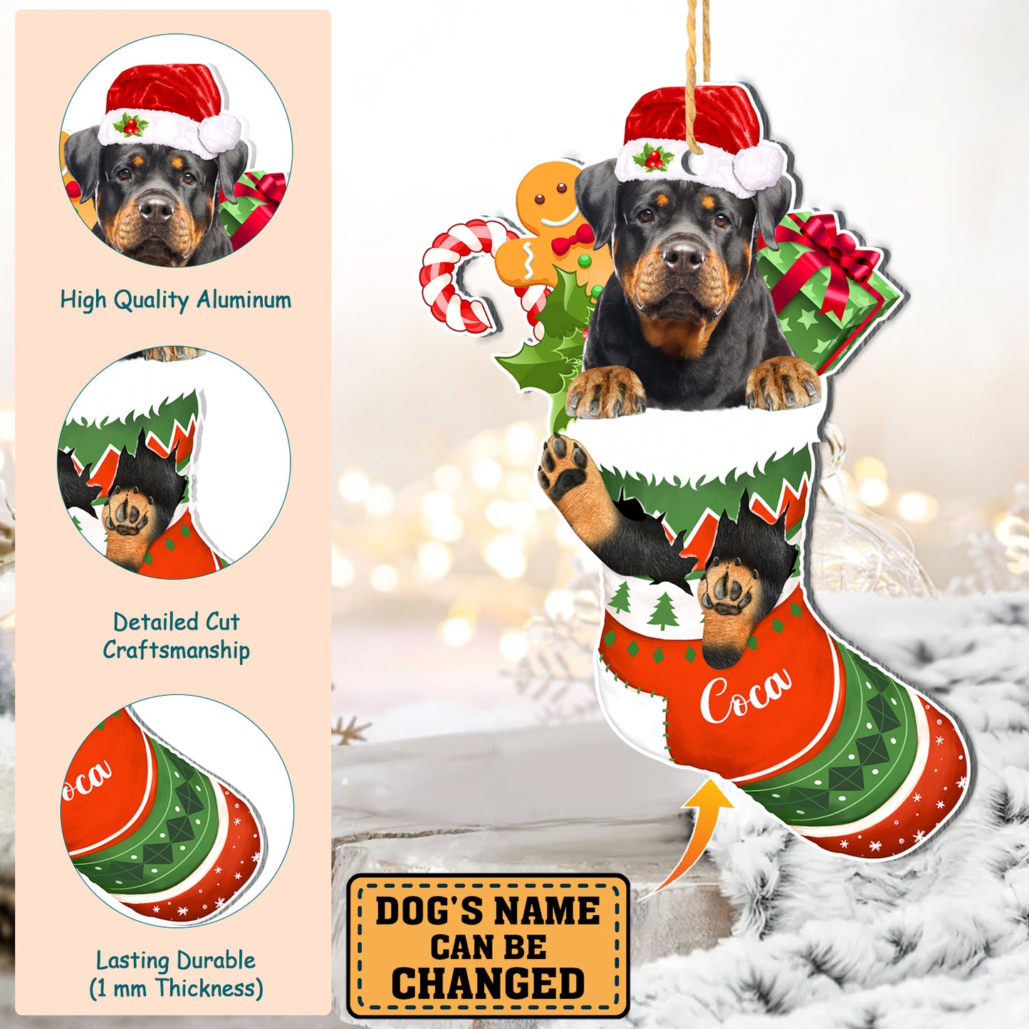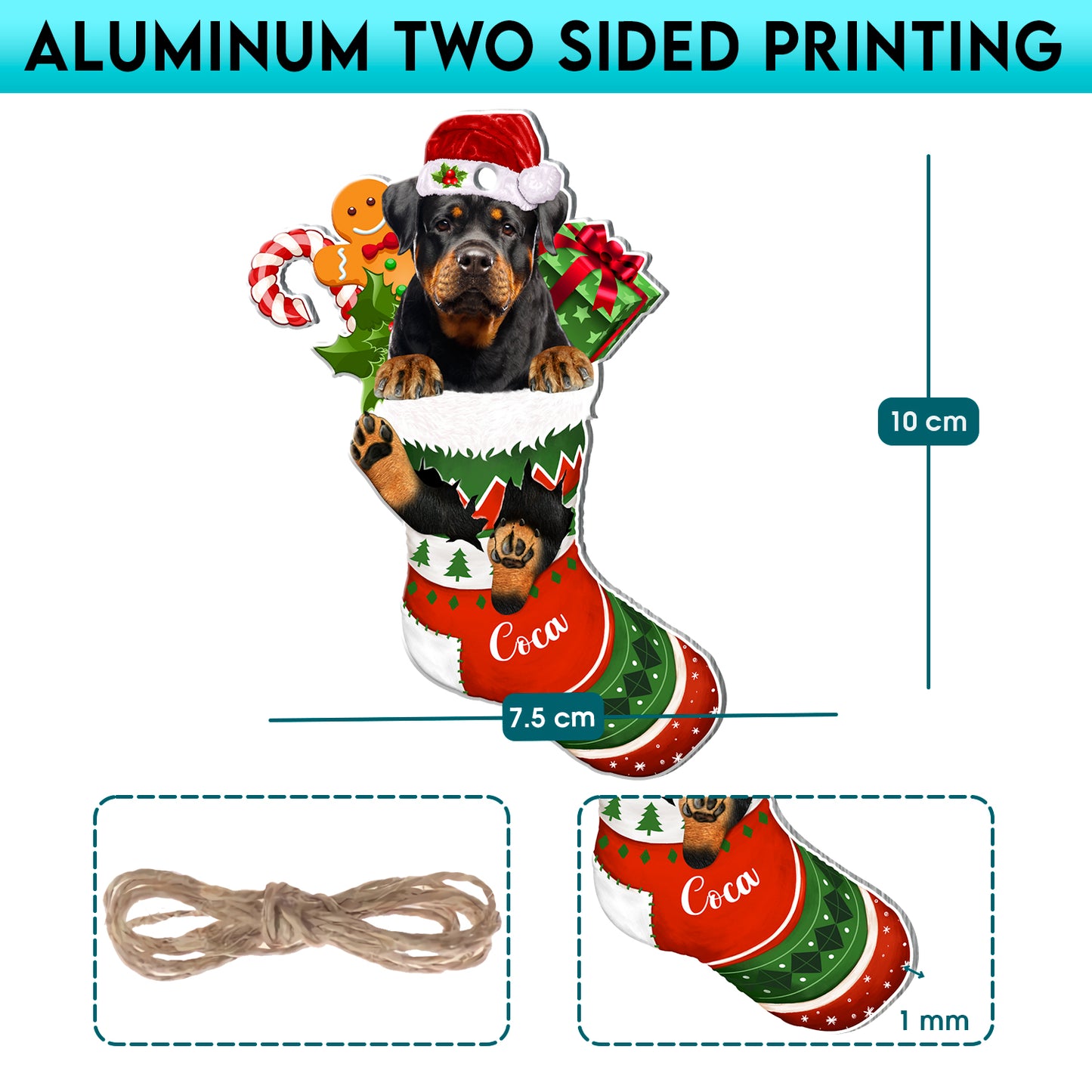 Personalized Rottweiler In Christmas Stocking Aluminum Ornament