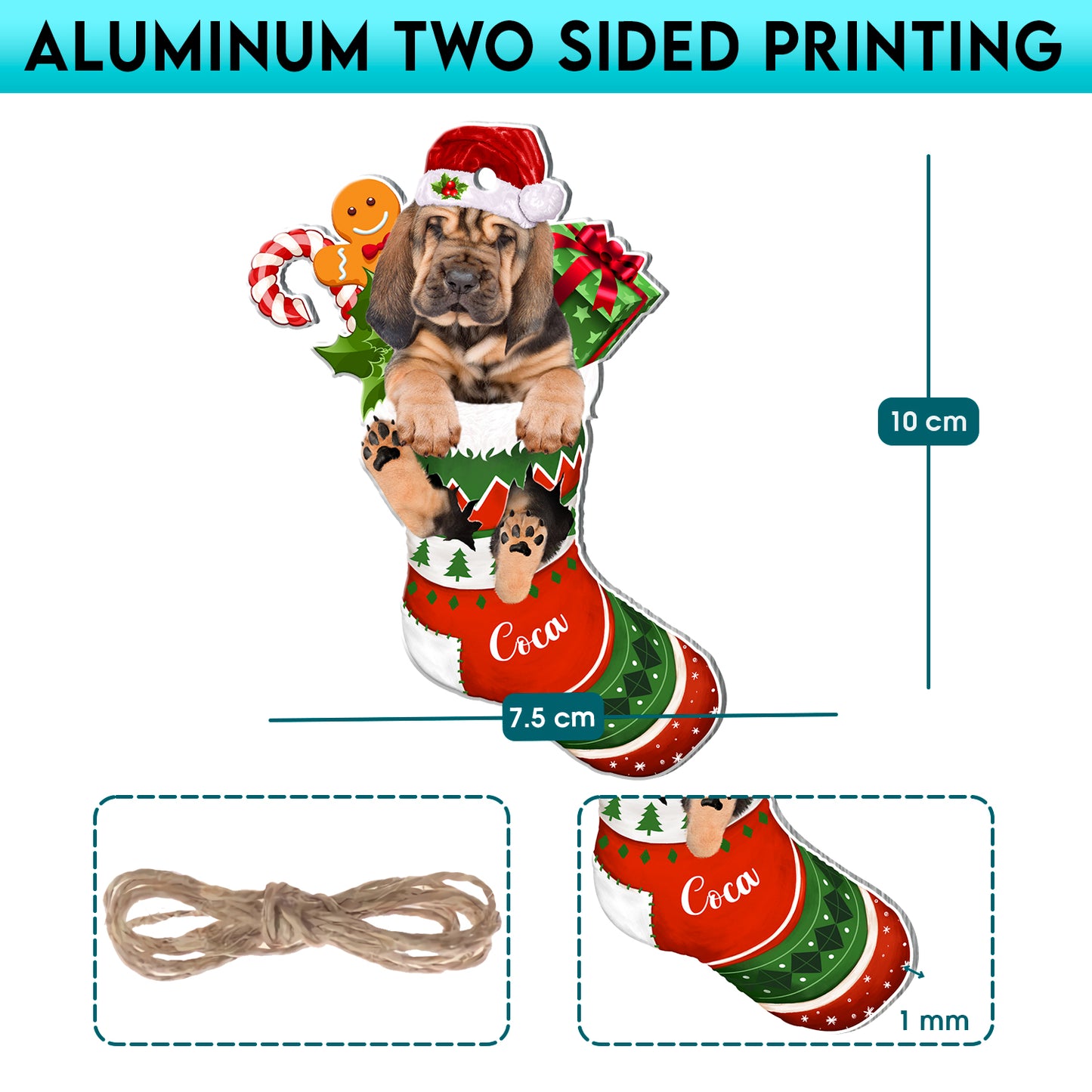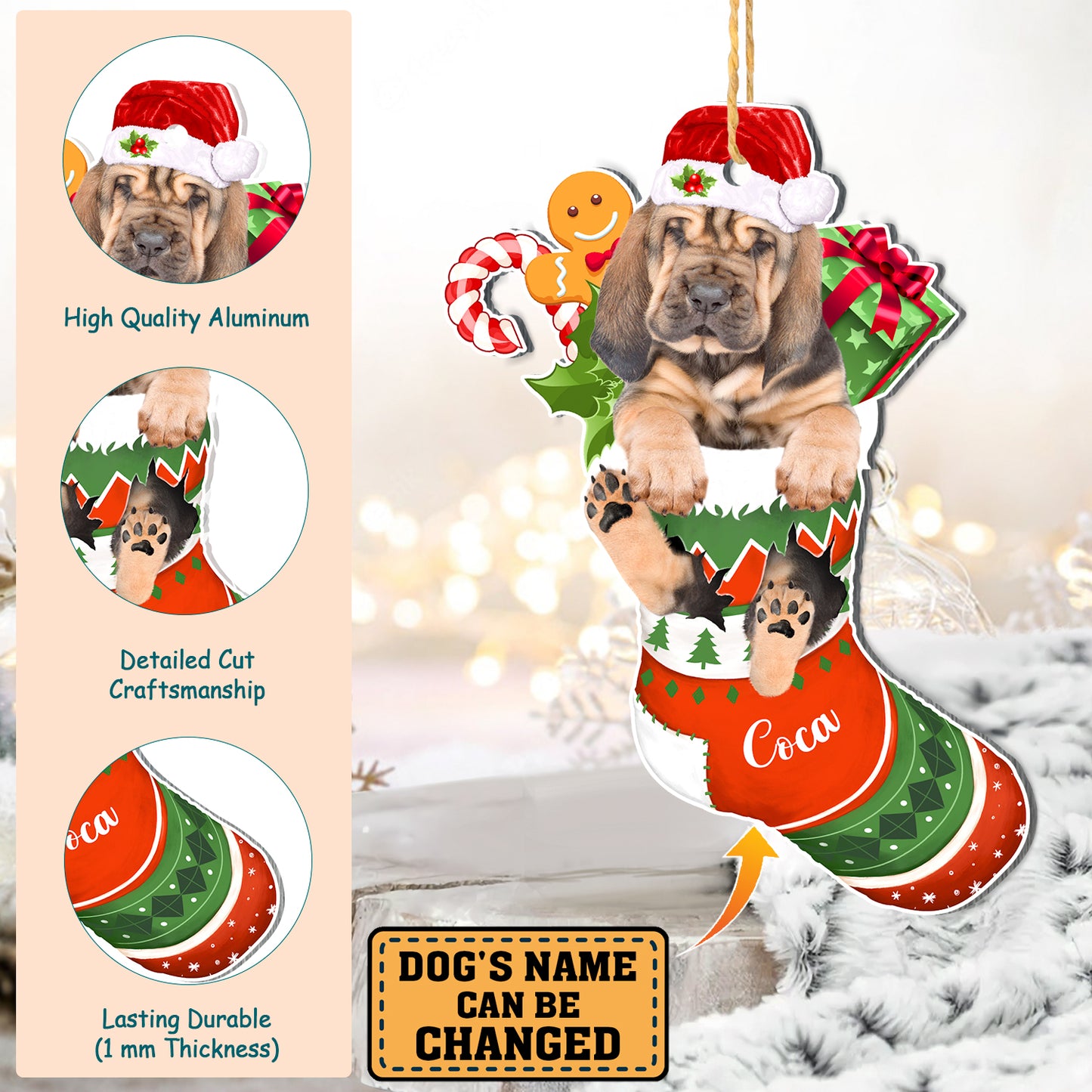 Personalized Blood Hound In Christmas Stocking Aluminum Ornament