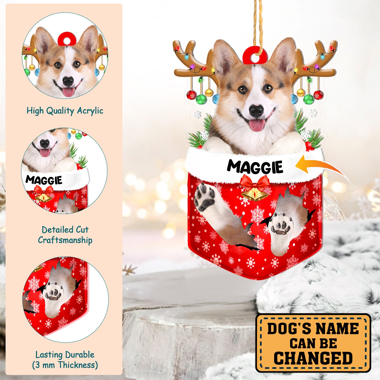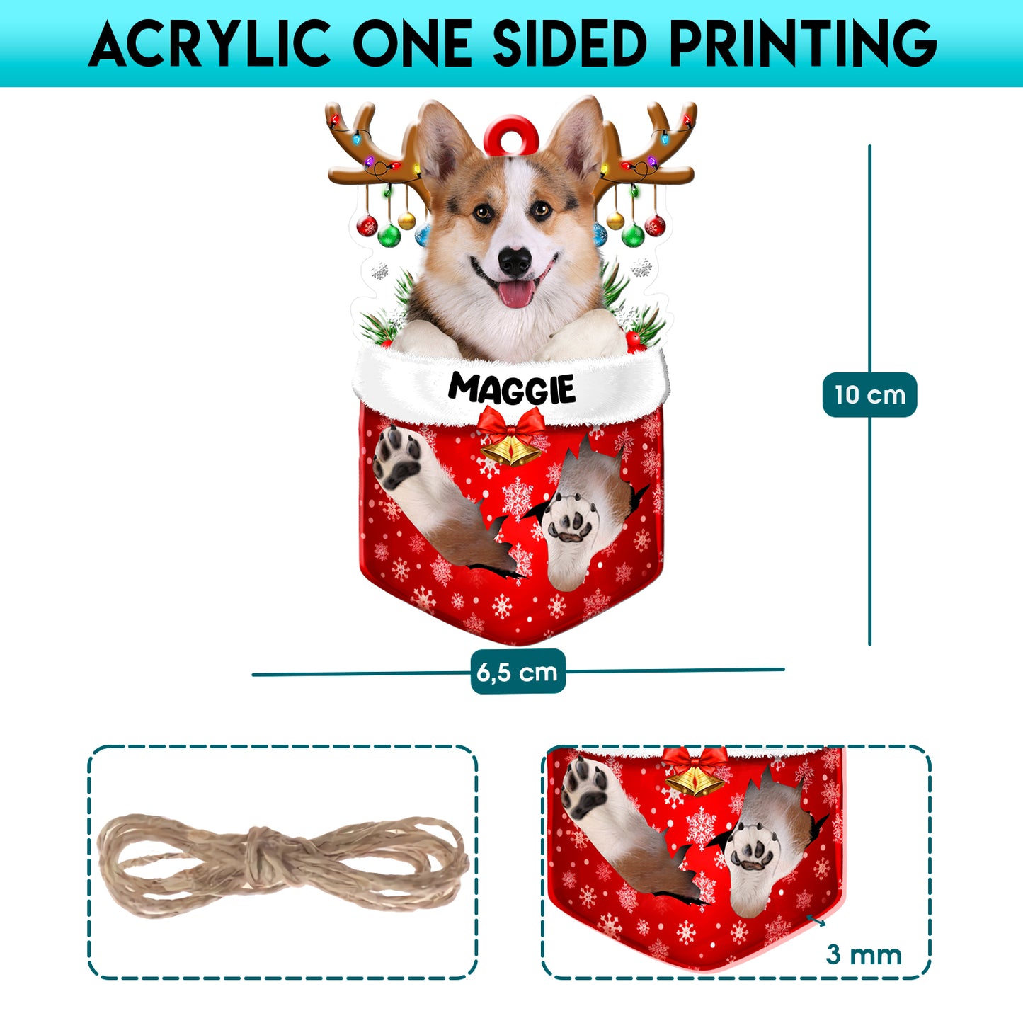 Personalized Corgi In Snow Pocket Christmas Acrylic Ornament