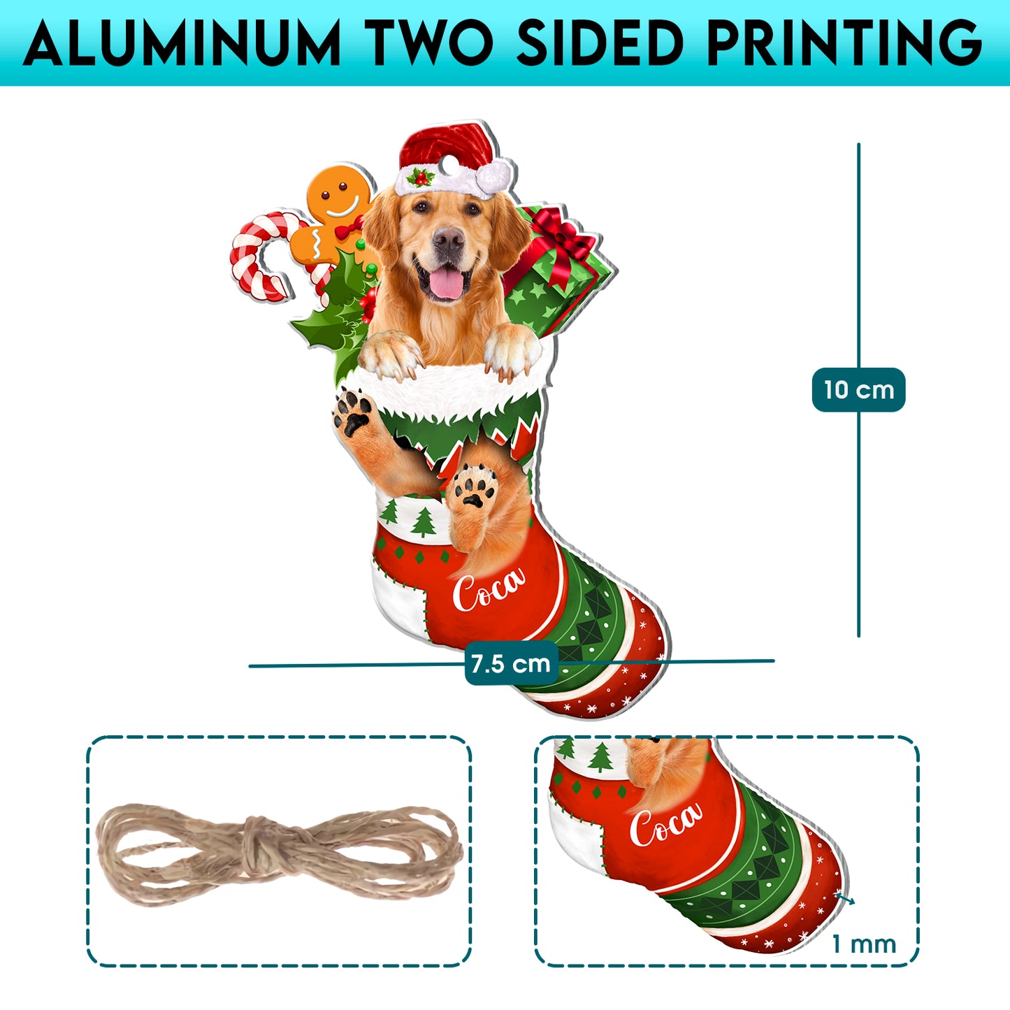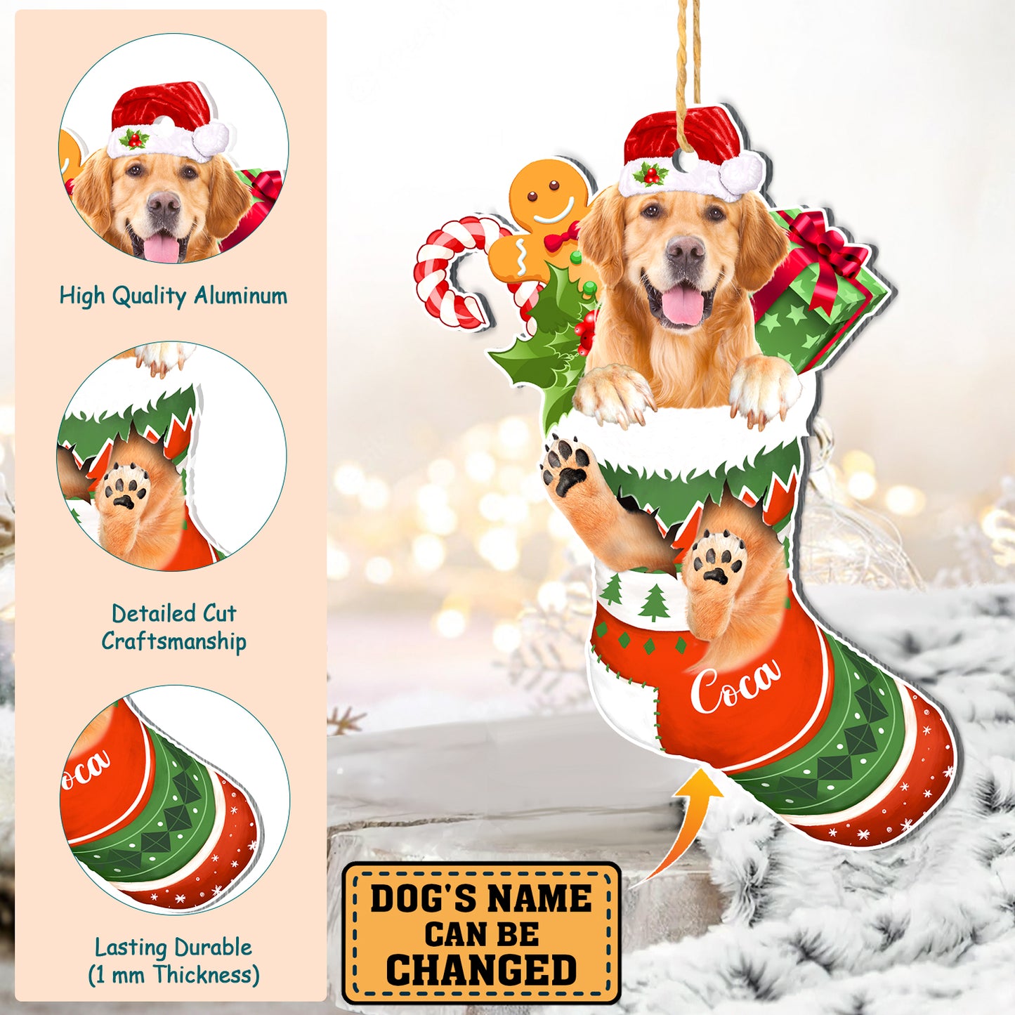 Personalized Golden Retriever In Christmas Stocking Aluminum Ornament