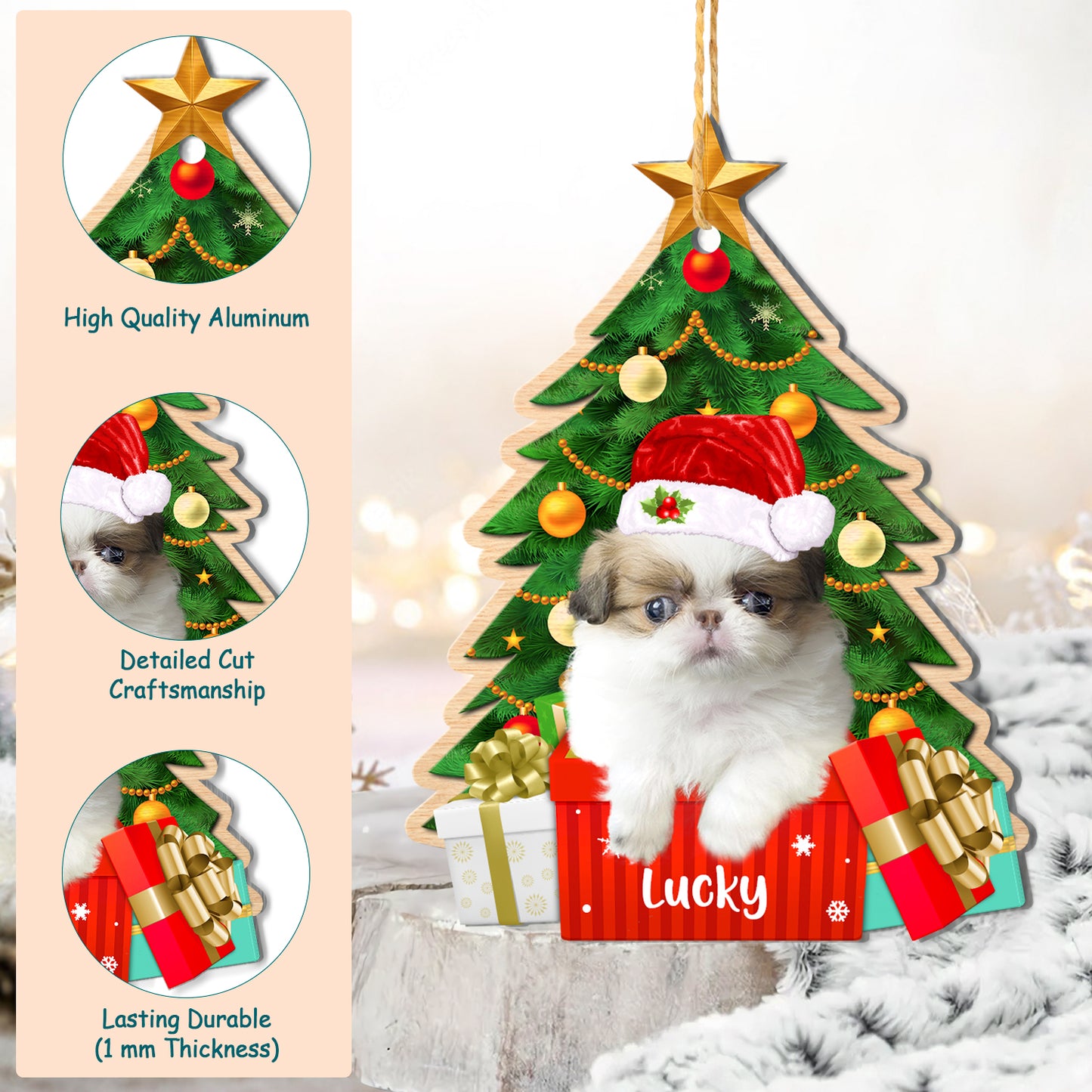 Personalized Japanese Chin Christmas Tree Aluminum Ornament