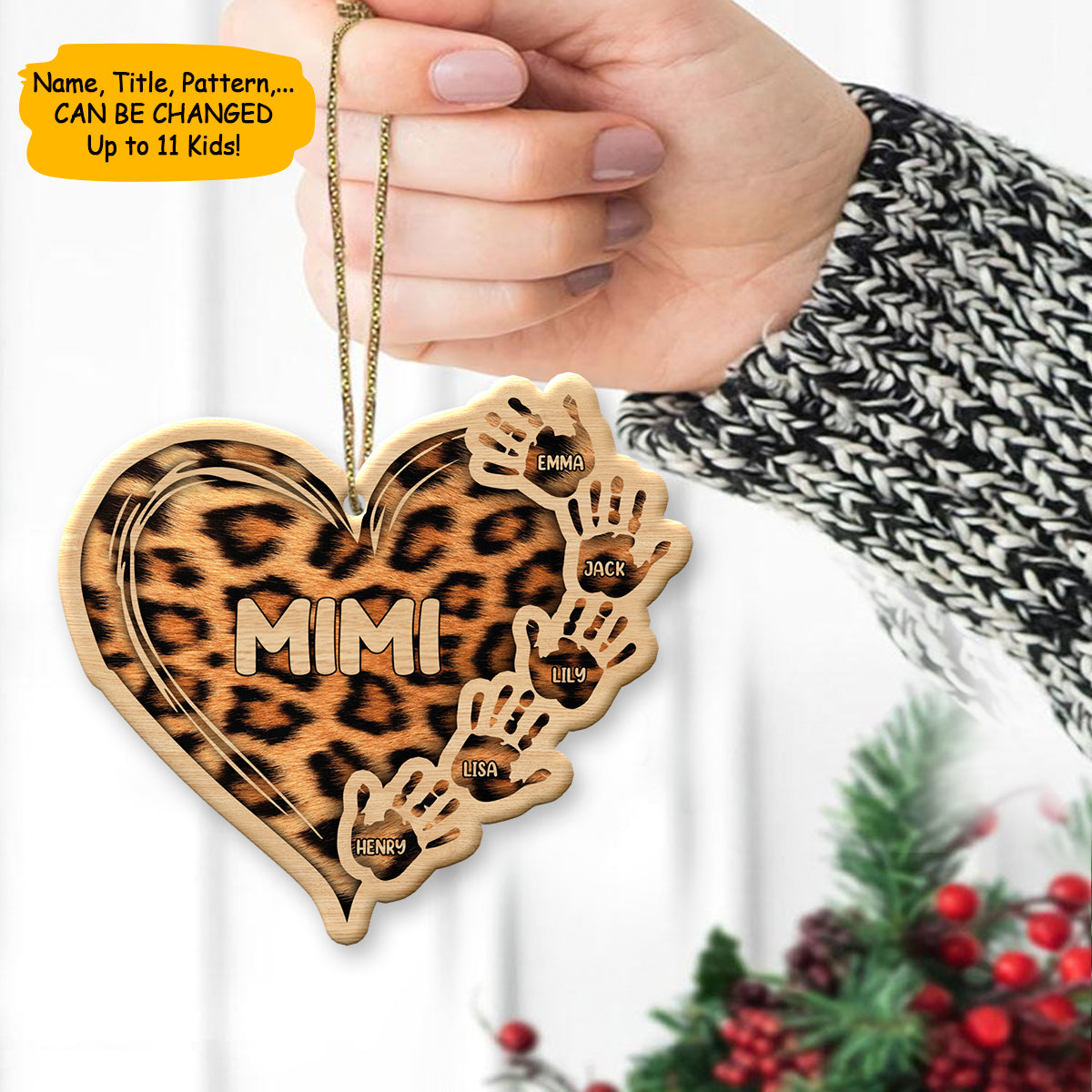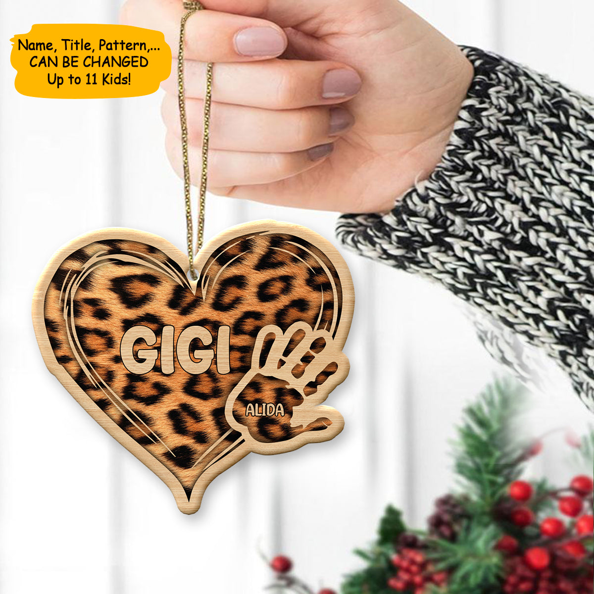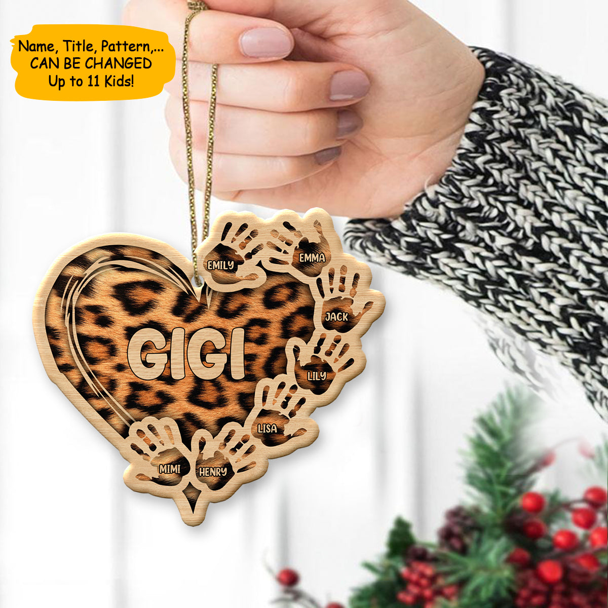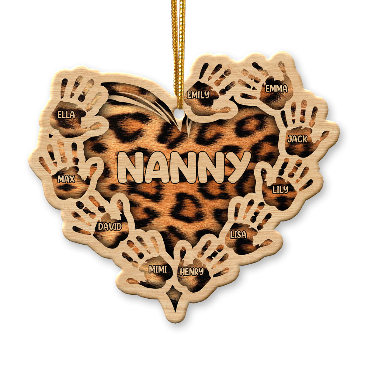 Personalized Leopard Hands Of Family Wood Heart Ornament