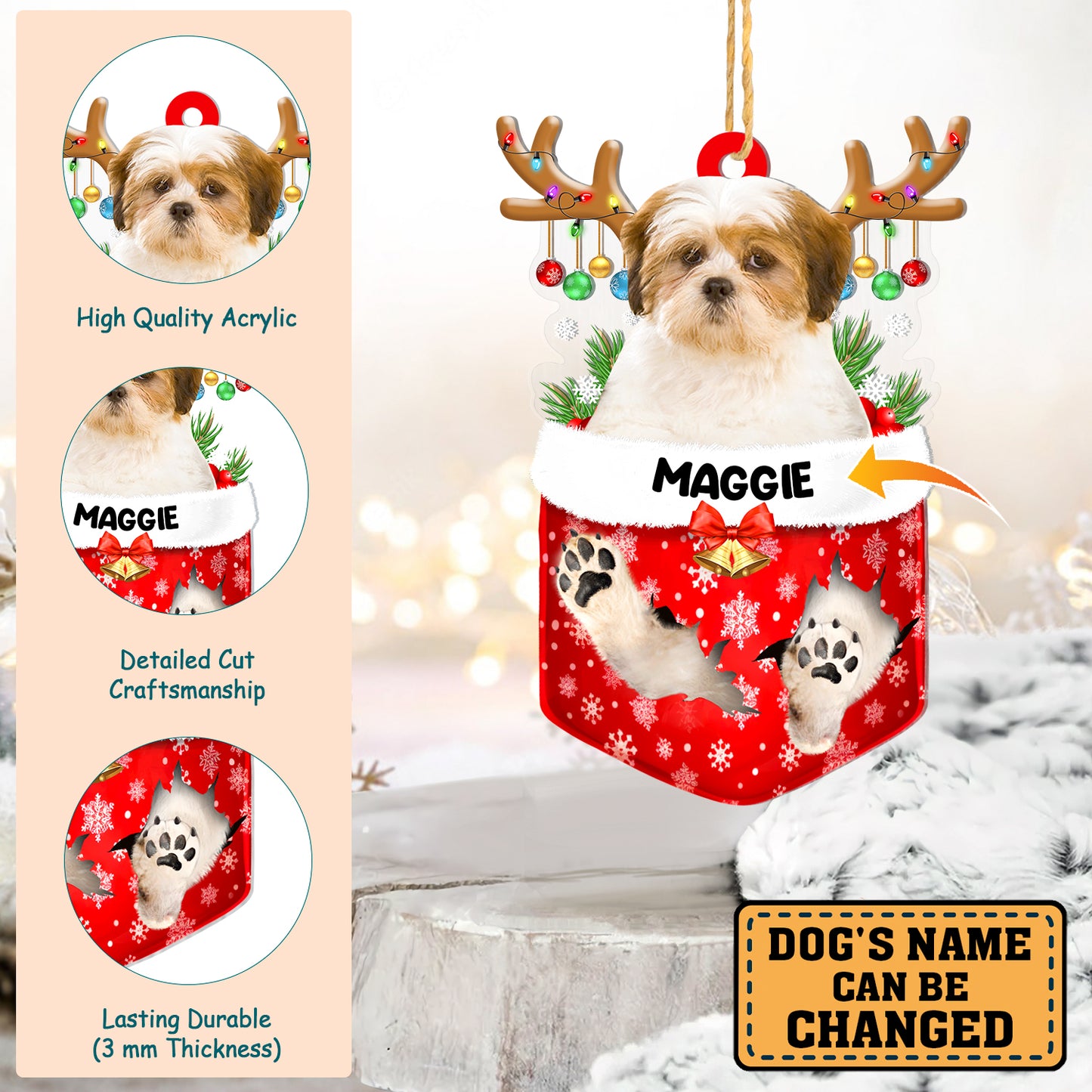 Personalized Lhasa Apso In Snow Pocket Christmas Acrylic Ornament