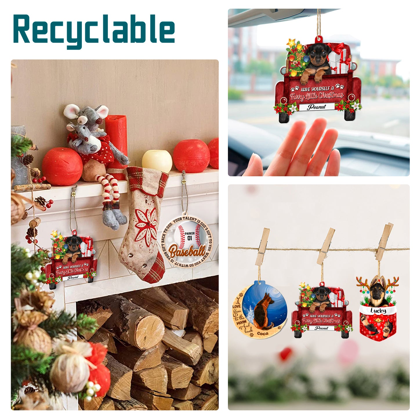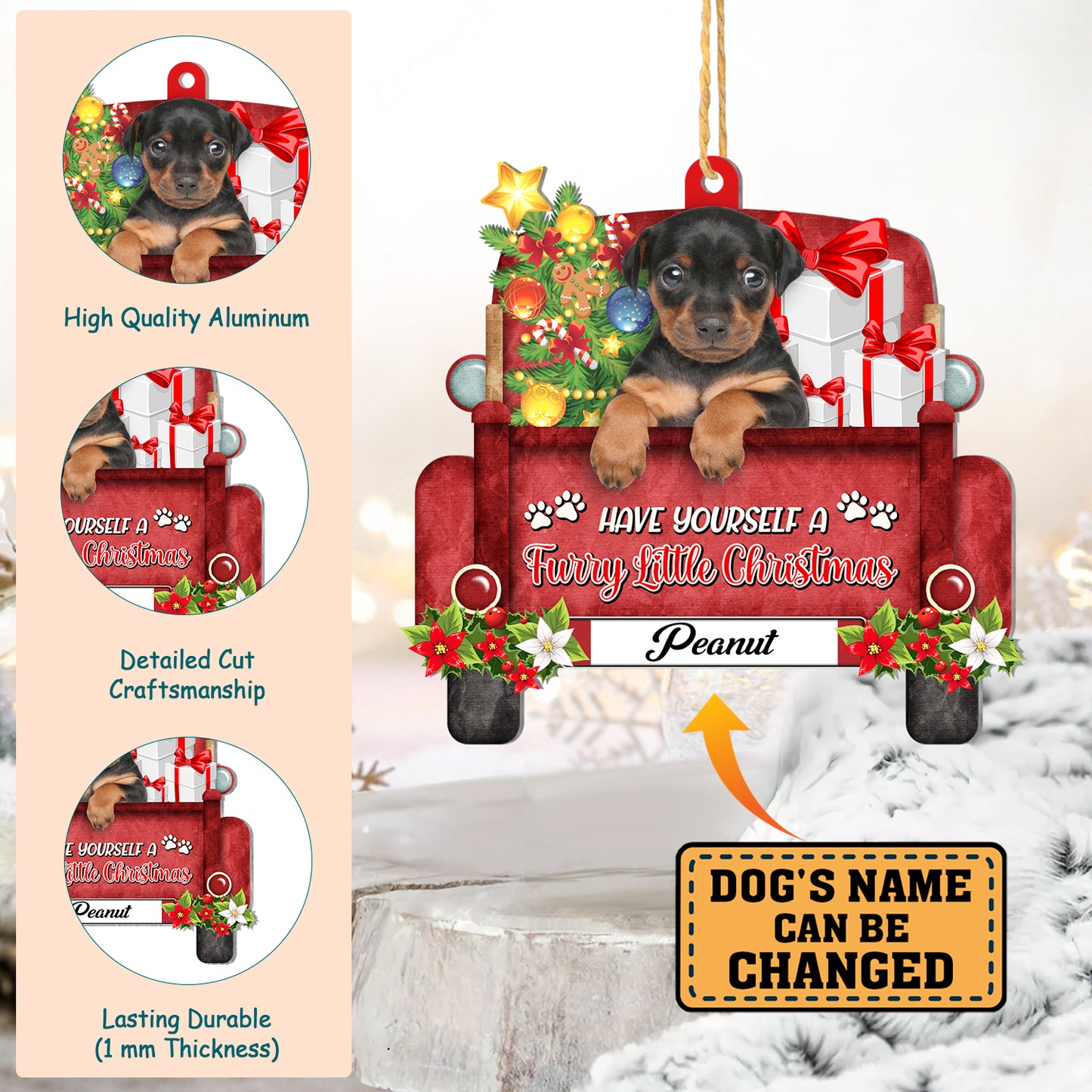 Personalized Miniature Pinscher Red Truck Christmas Aluminum Ornament