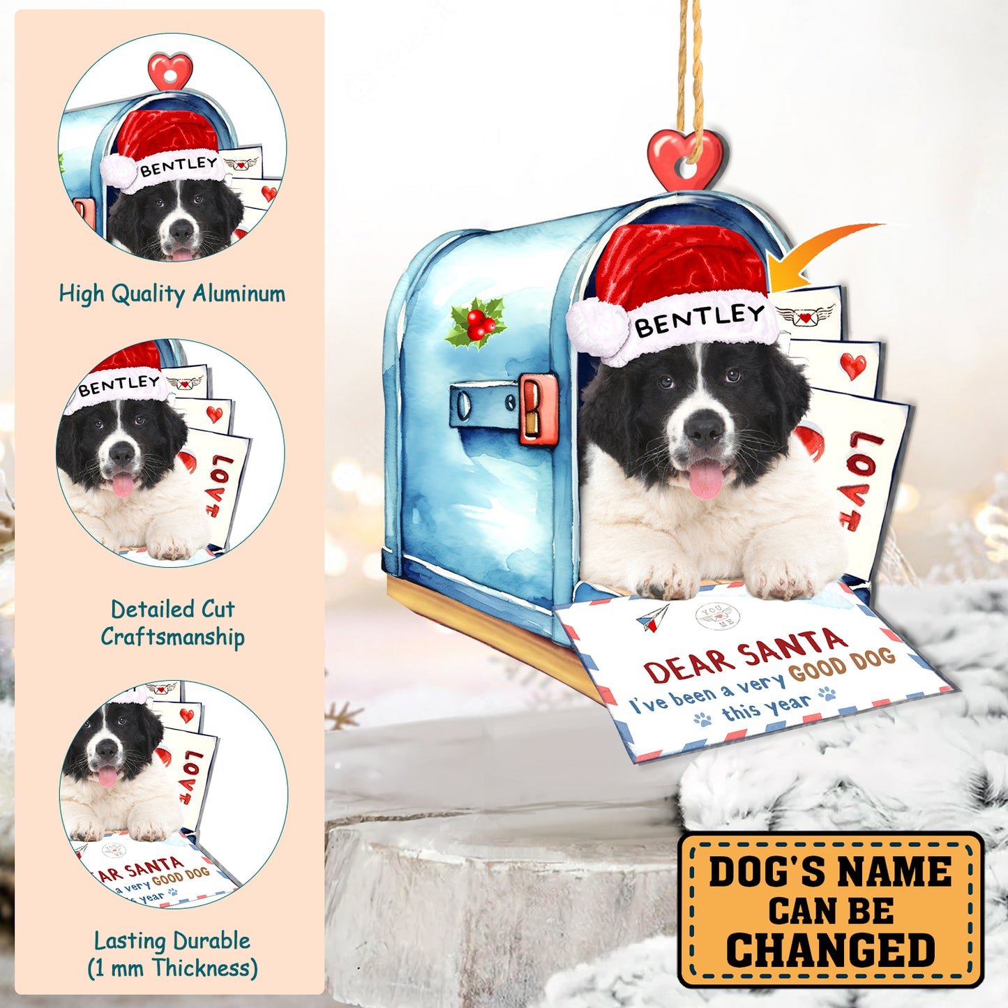 Personalized Newfoundland Dog In Mailbox Christmas Aluminum Ornament