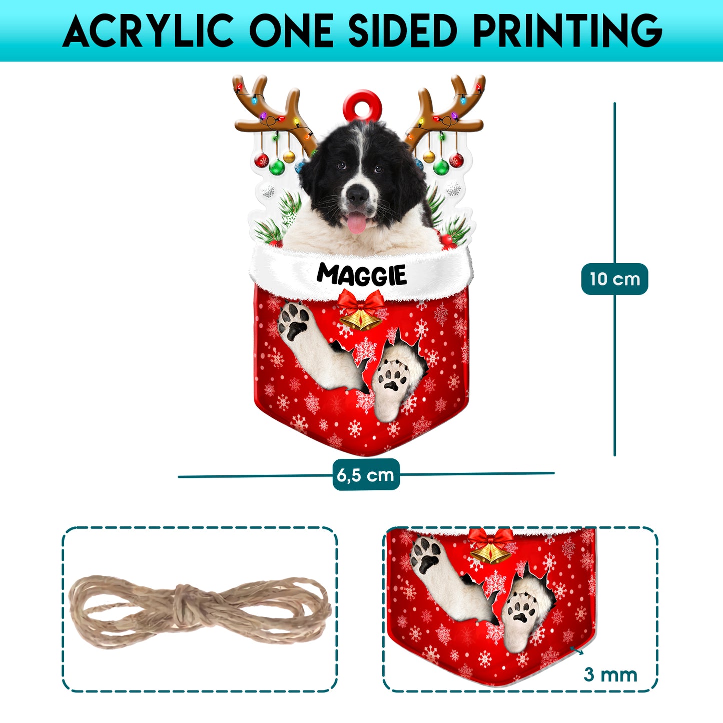 Personalized Newfoundland Dog In Snow Pocket Christmas Acrylic Ornament