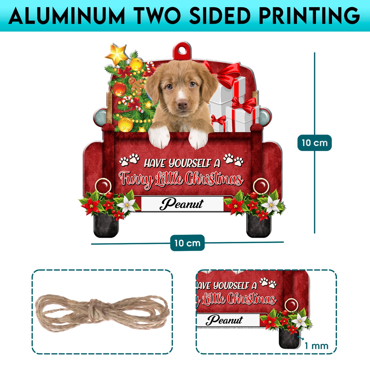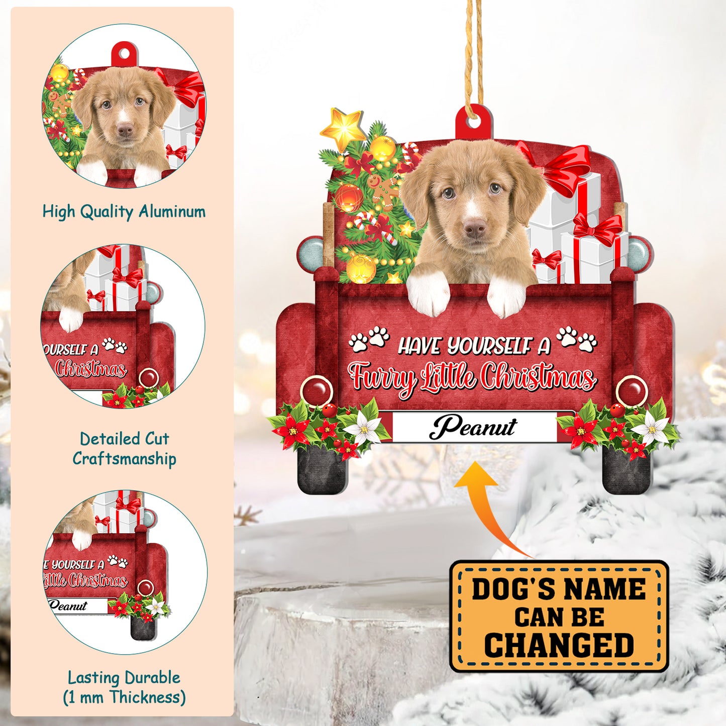 Personalized Nova Scotia Duck Tolling Retriever Red Truck Christmas Aluminum Ornament