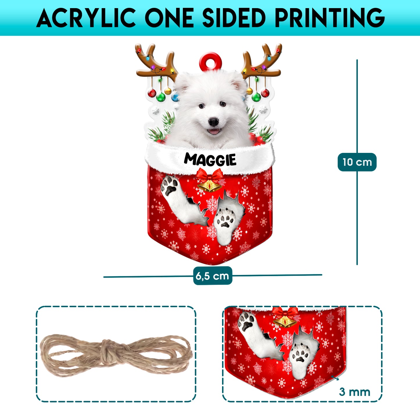 Personalized Samoyed In Snow Pocket Christmas Acrylic Ornament
