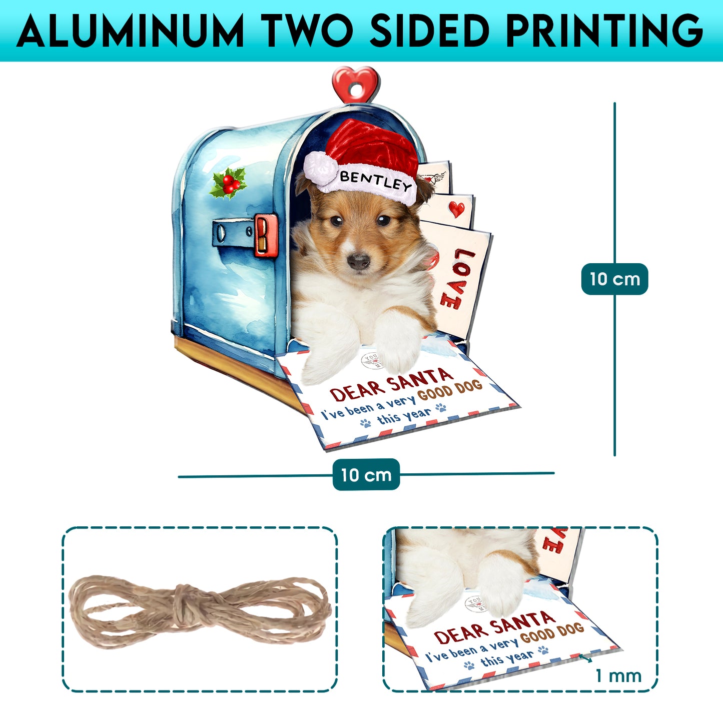 Personalized Shetland Sheepdog In Mailbox Christmas Aluminum Ornament