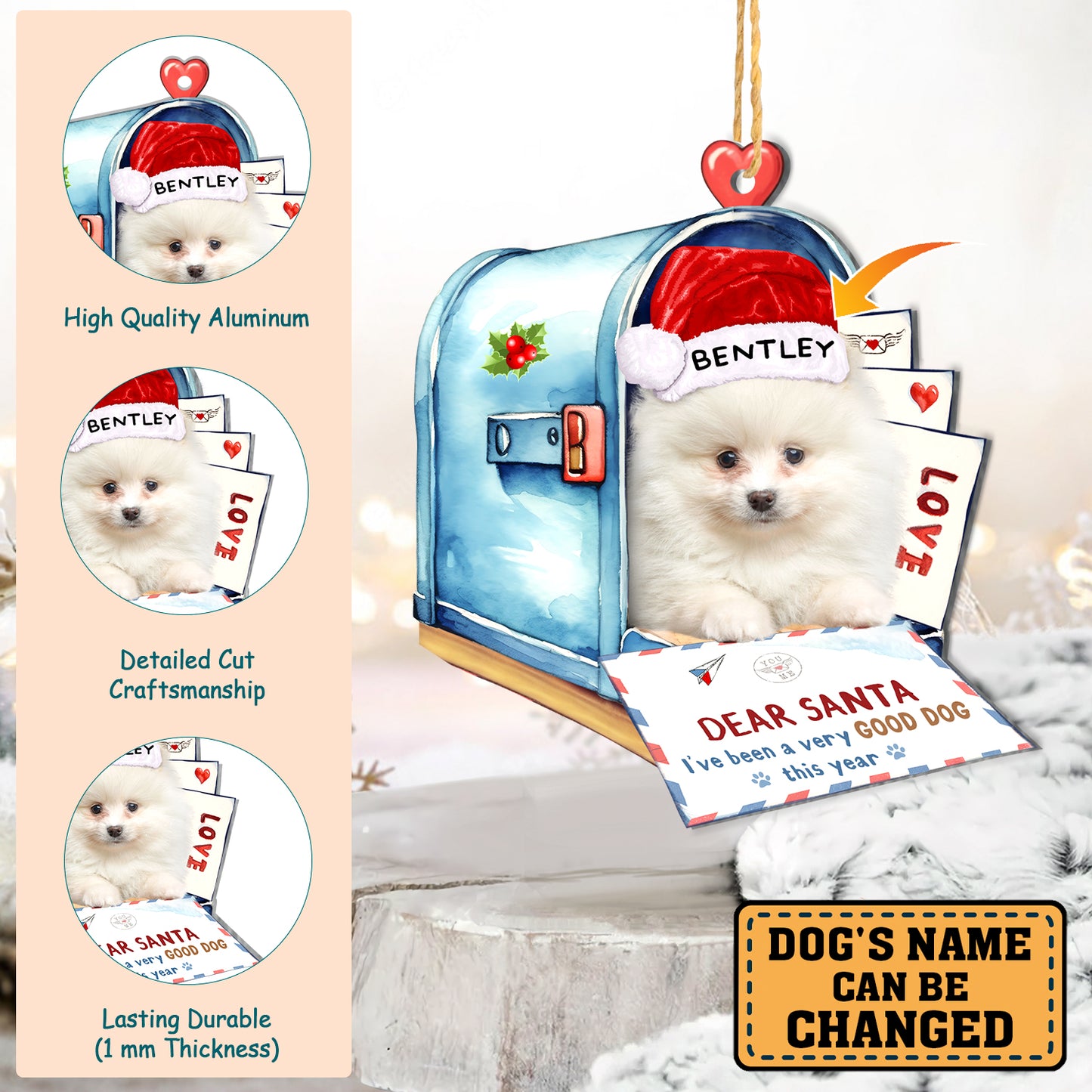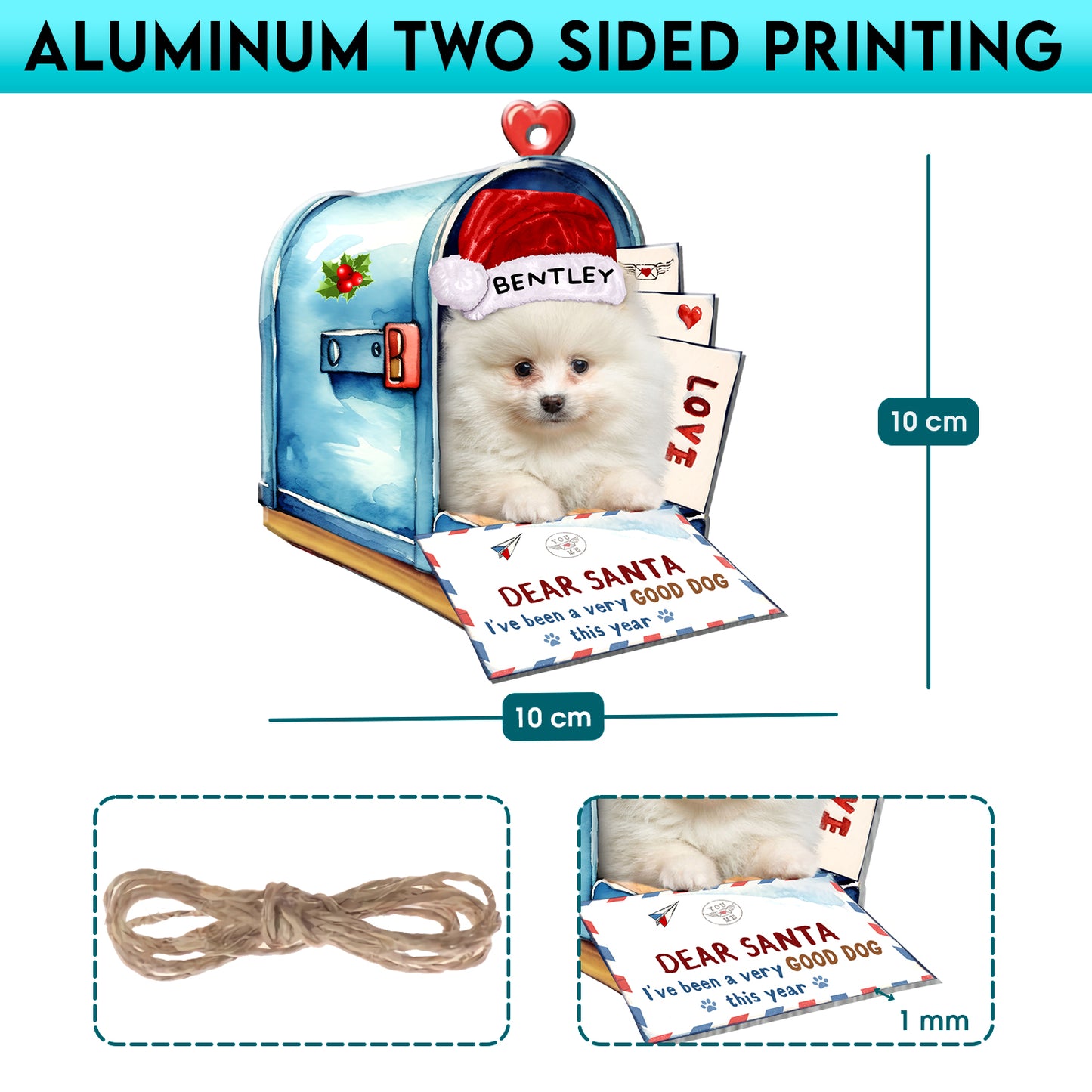 Personalized White Pomeranian In Mailbox Christmas Aluminum Ornament