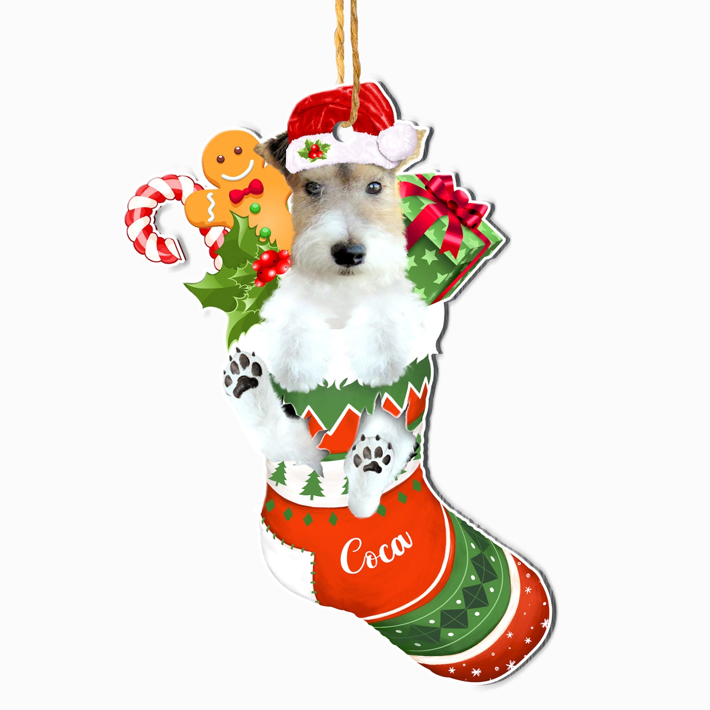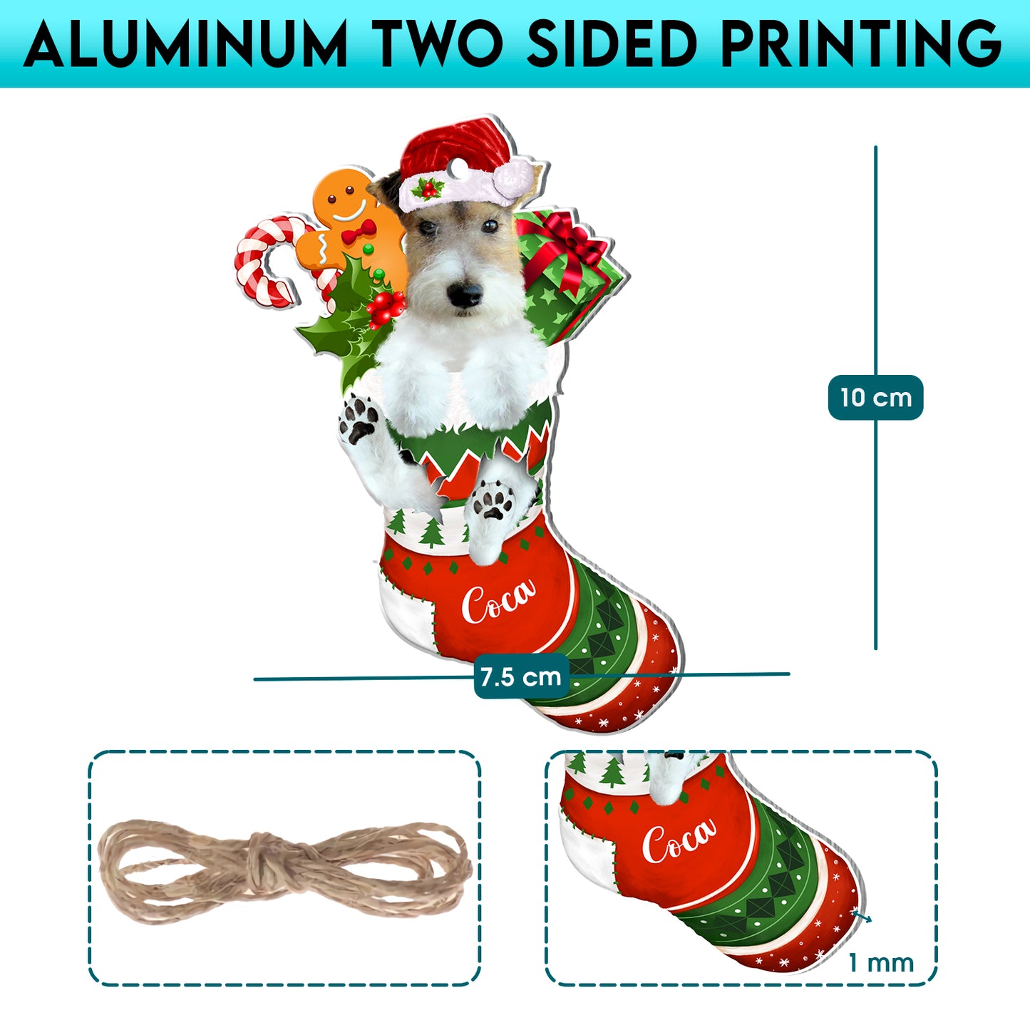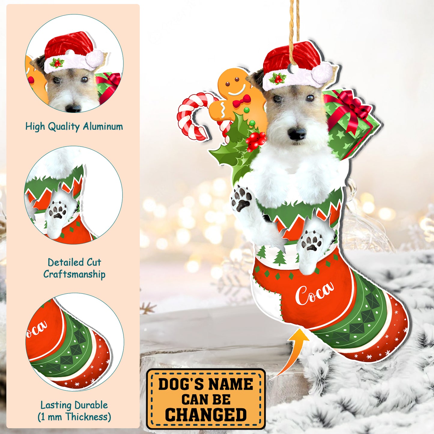 Personalized White Wire Fox Terrier In Christmas Stocking Aluminum Ornament