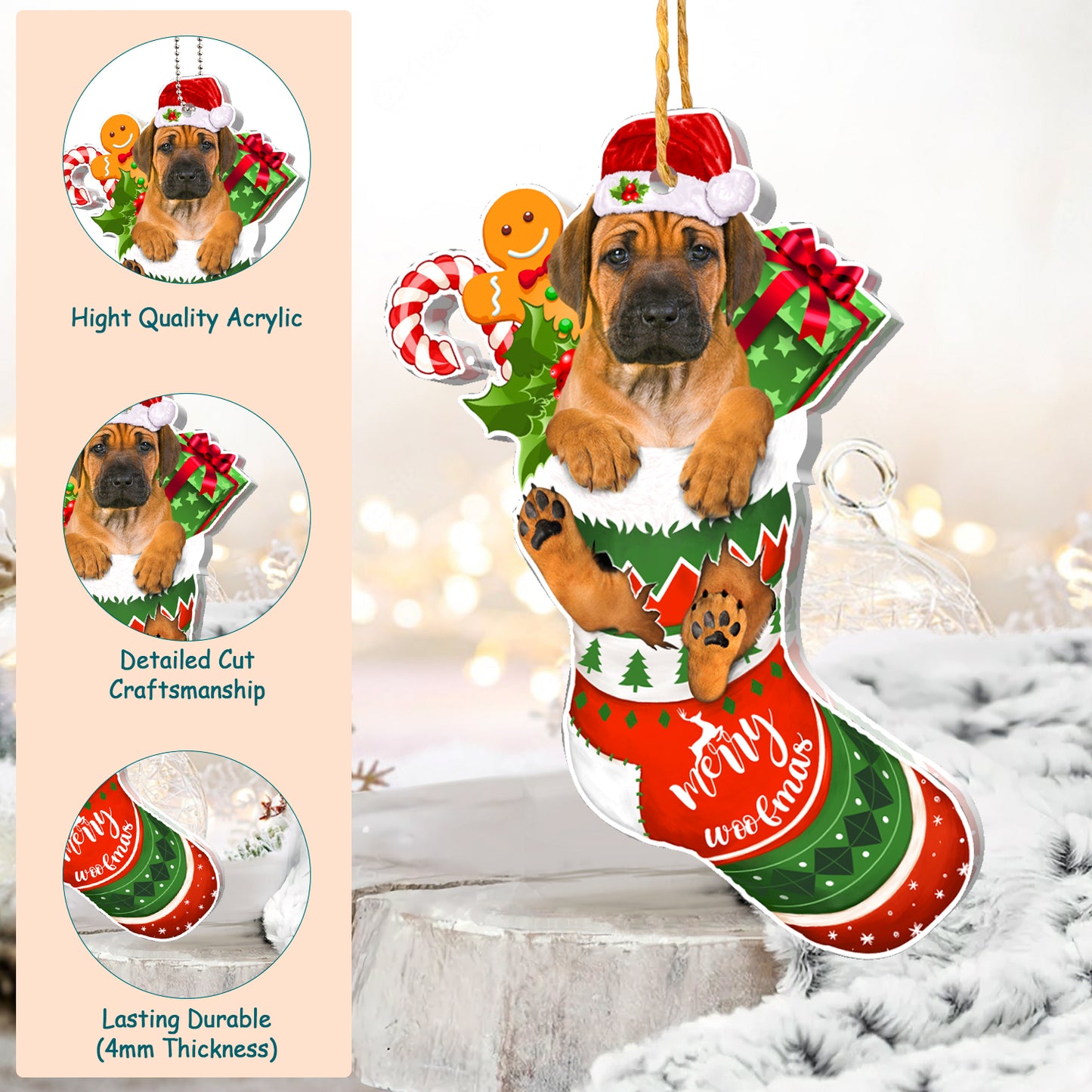 Rhodesian Ridgeback Tree Socks Acrylic Ornament