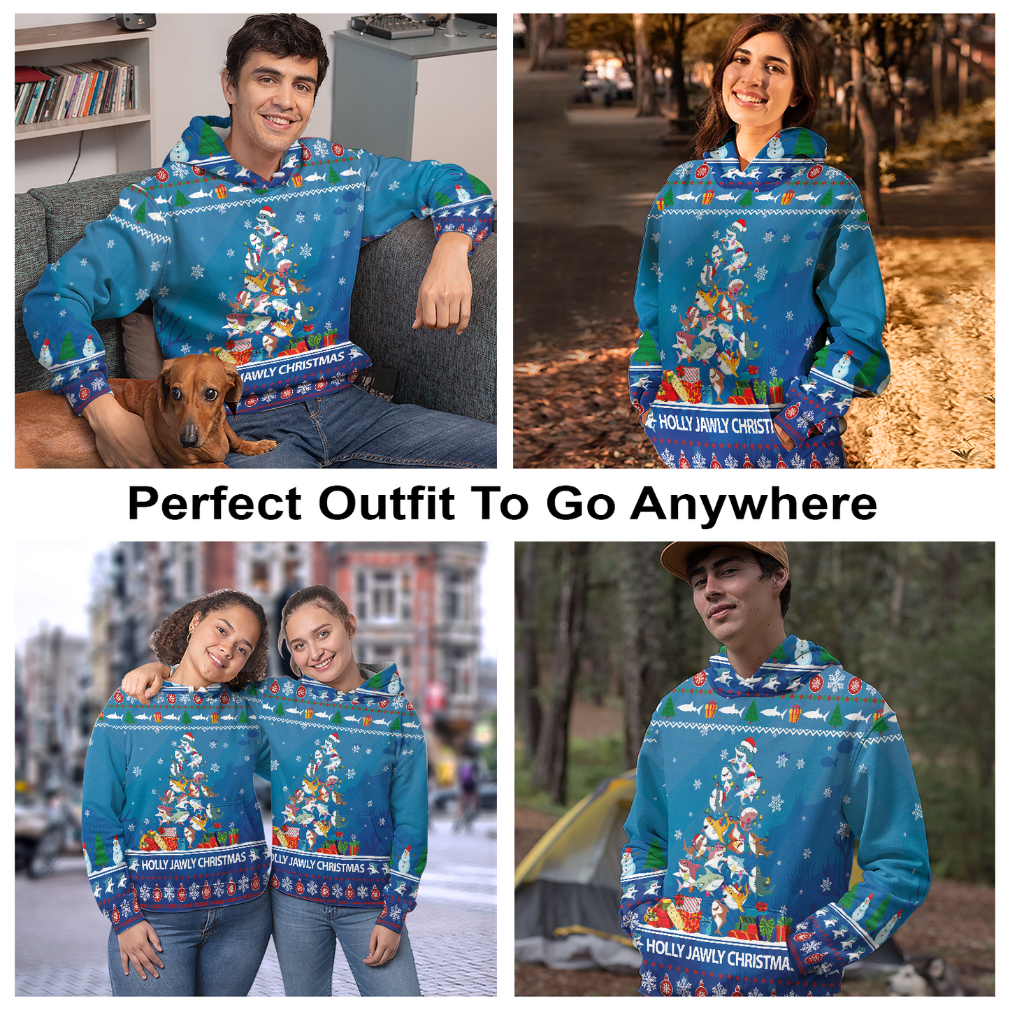 Shark Holly Jawly Christmas All Over Print Unisex Hoodie