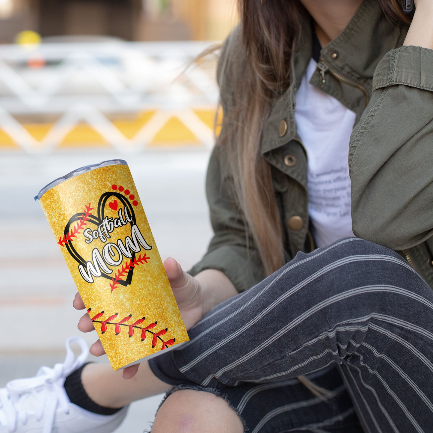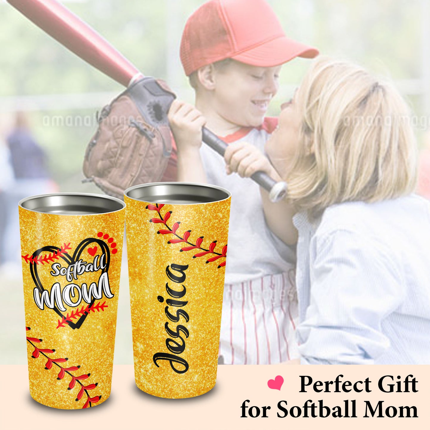 Softball Mom Heart Custom Name 20Oz Tumbler