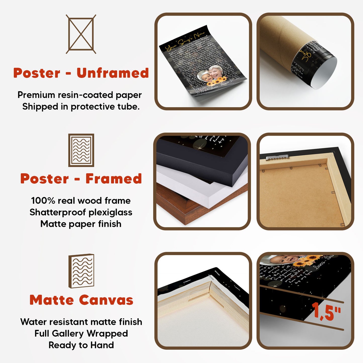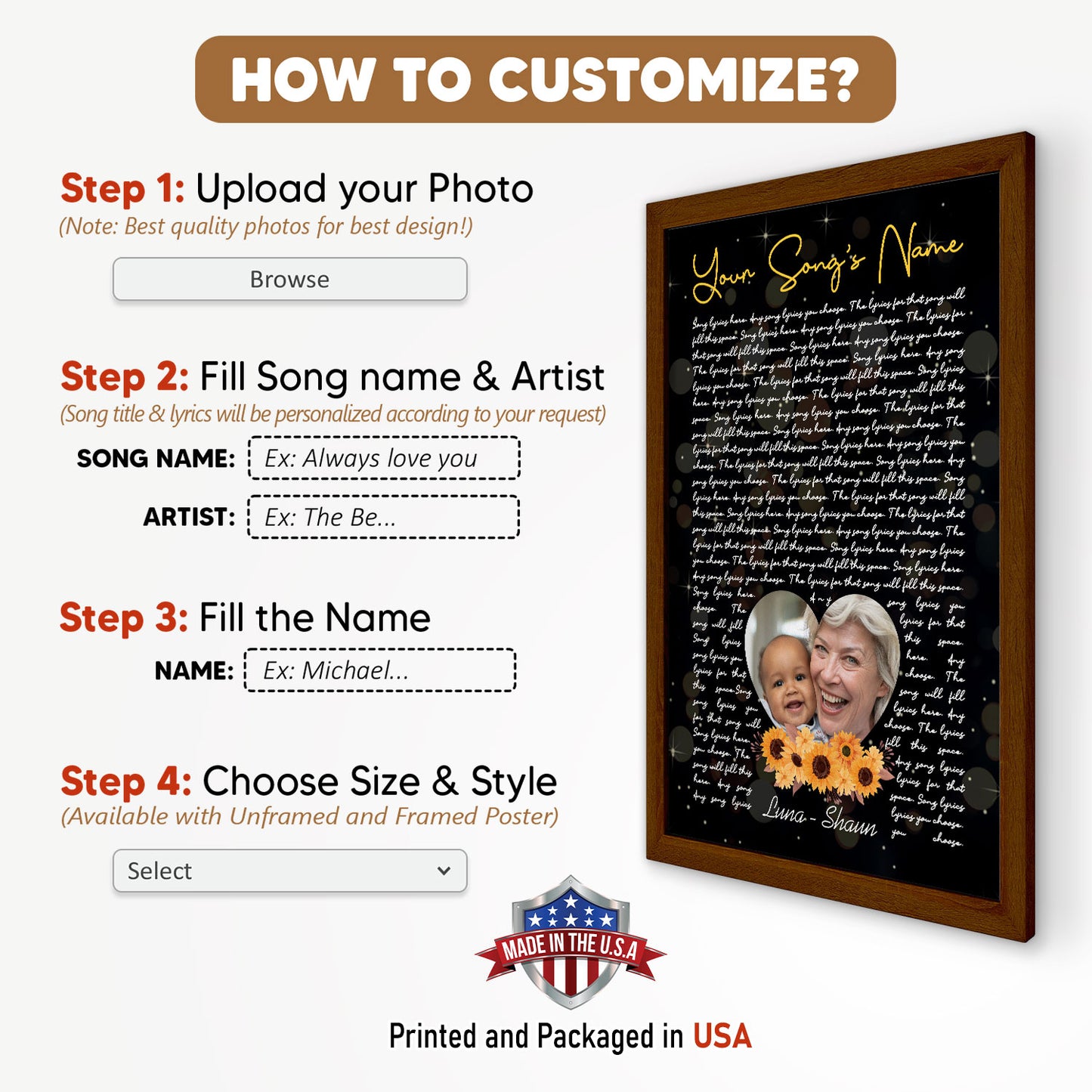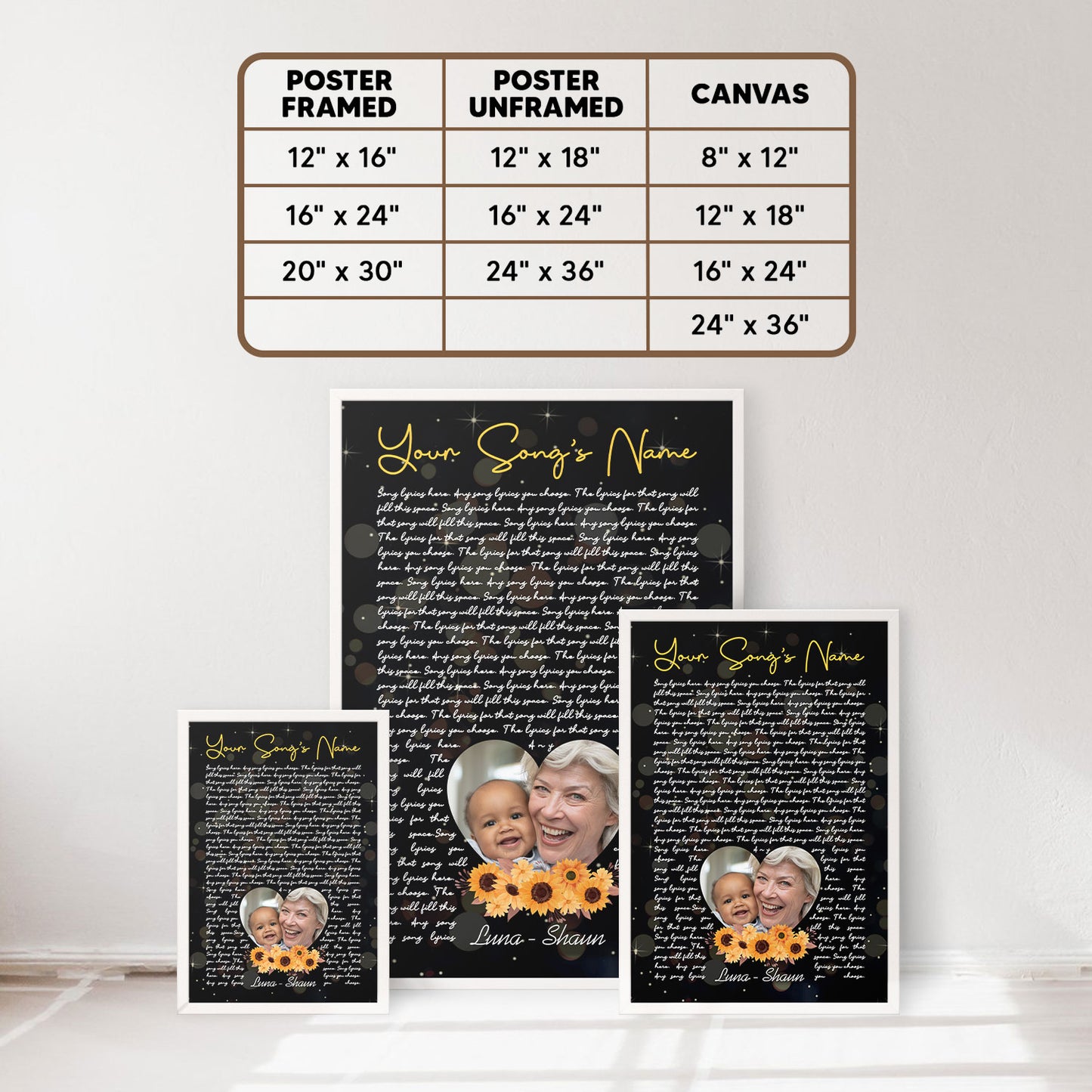 Song Lyrics Custom Image Gift For Grandma Sunflower Vertical Poster