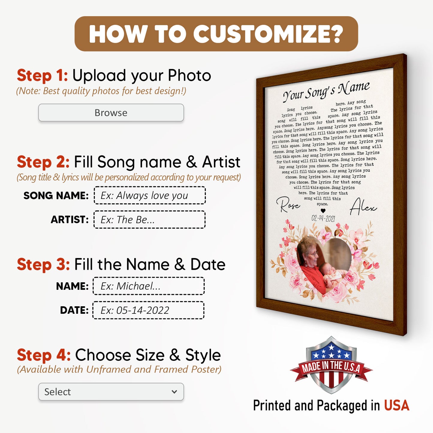 Song Lyrics Custom Image Gift For Grandma Vertical Poster