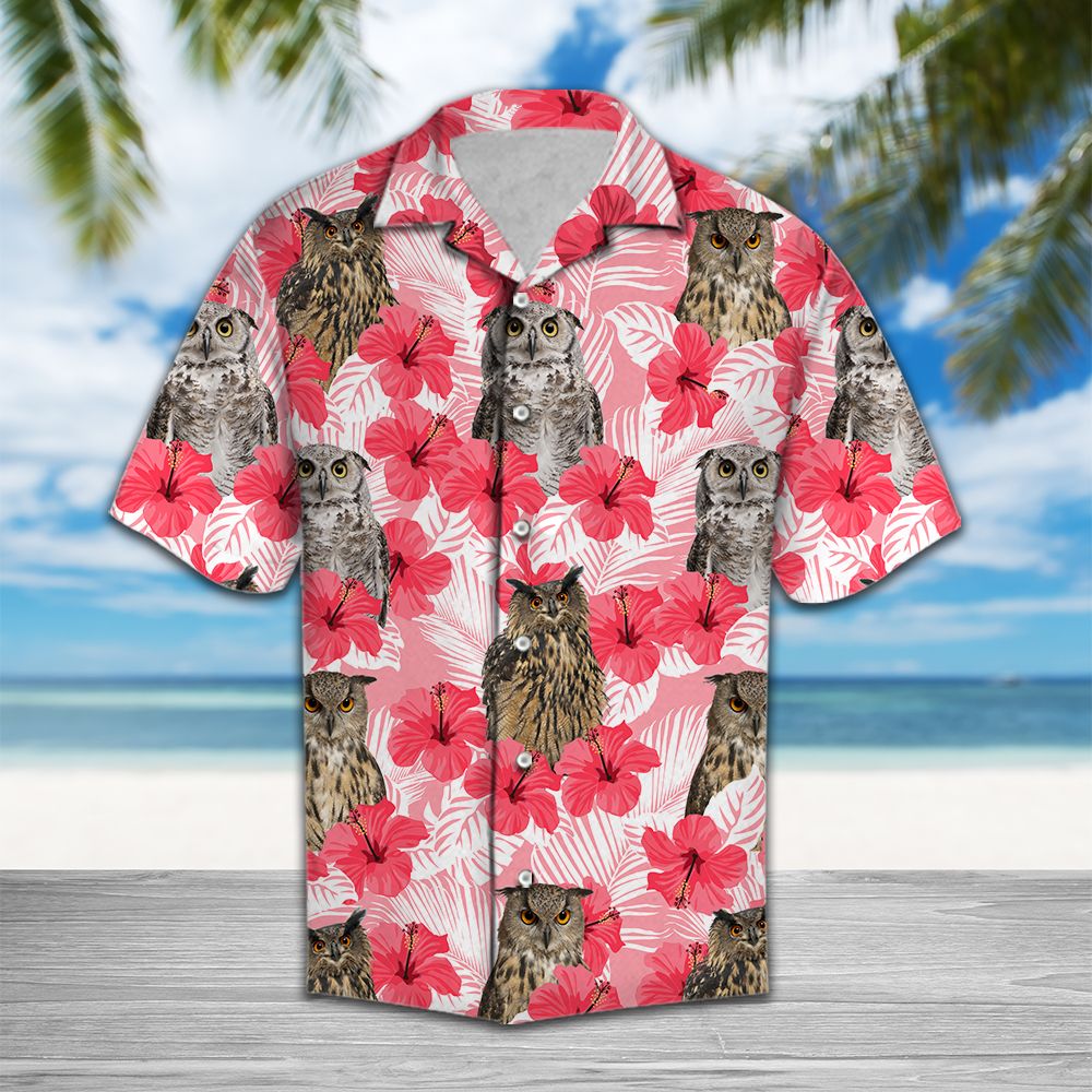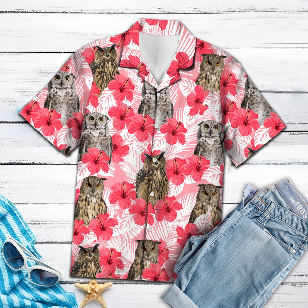 Tropical Flowers Hibiscus Owl H97040 - Hawaii Shirt